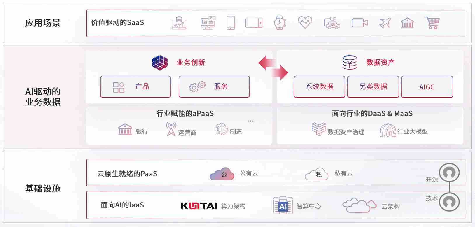 数字时代,,,,围绕企业数字化转型的关键要素,,,hahabet数码开创性的提出数云融合战略和技术体系框架,,着力在云原生、、、数字原生、、AI原生和信创产业上架构产品和服务能力,,,为处在不同数字化转型阶段的快消零售、、汽车、、、、金融、、、、医疗、、、、政企、、、教育、、、运营商等行业客户提供泛在的敏捷IT能力和融合的数据驱动能力,,,,构建跨界融合创新的数字业务场景和新业务模式,,,,助力企业级客户建立面向未来的核心能力和竞争优势,,,全面推动社会的数字化、、、智能化转型升级。。